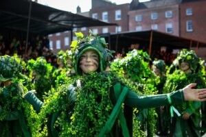 Families and tourists thronged the streets in cities and towns across the island of Ireland for St Patrick’s Day, while reflecting on what it means to be Irish..