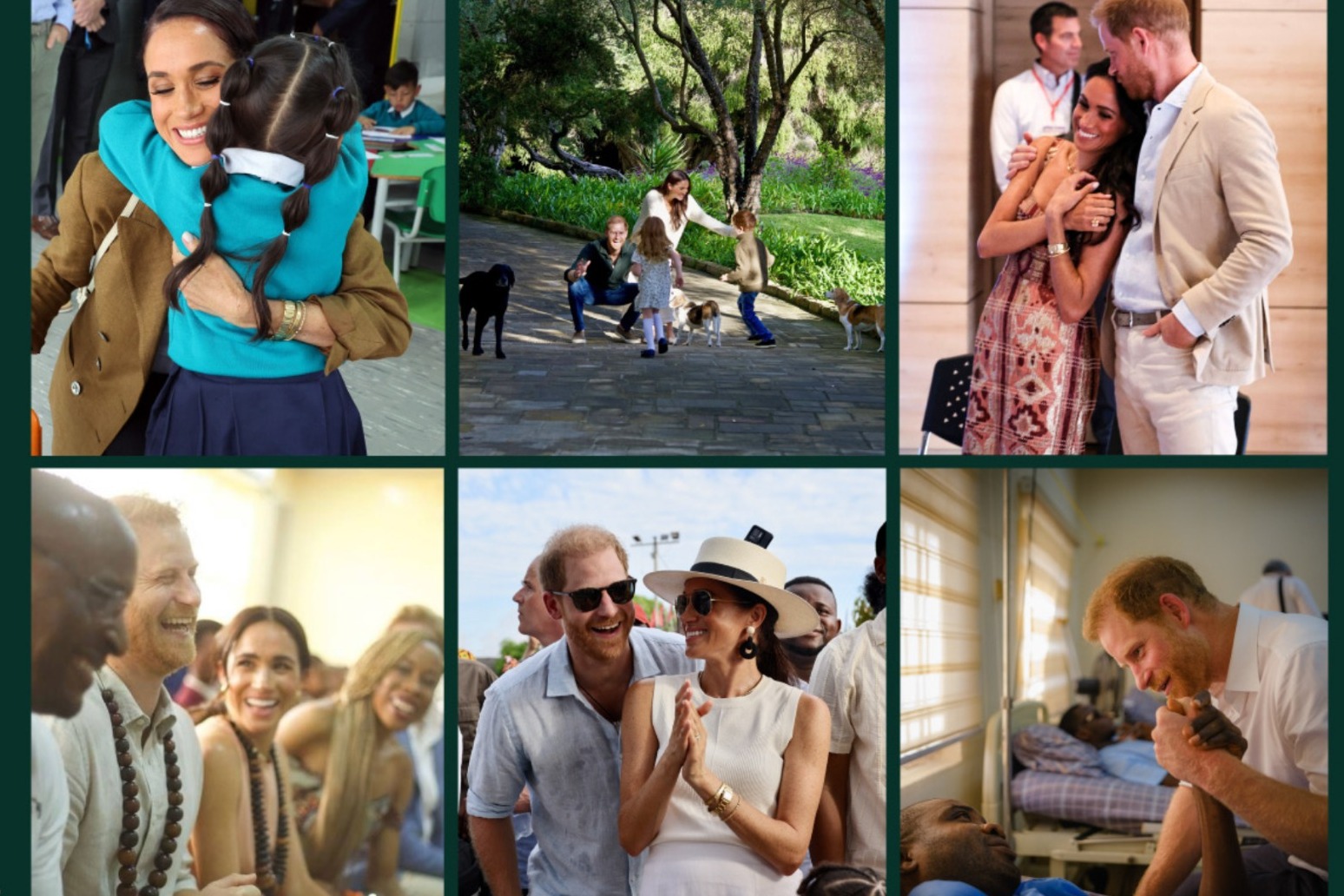The images are thought to reflect the couple’s year, with one picture showing Meghan embracing a young girl while in another Harry puts his arm around his wife.